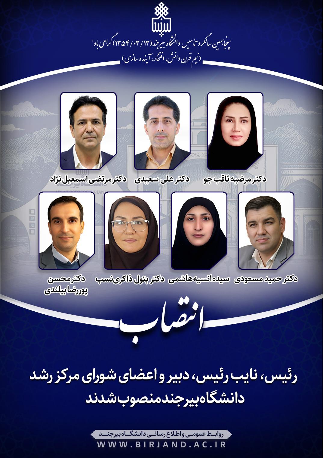 رئیس، نایب رئیس، دبیر و اعضای شورای مرکز رشد دانشگاه بیرجند منصوب شدند