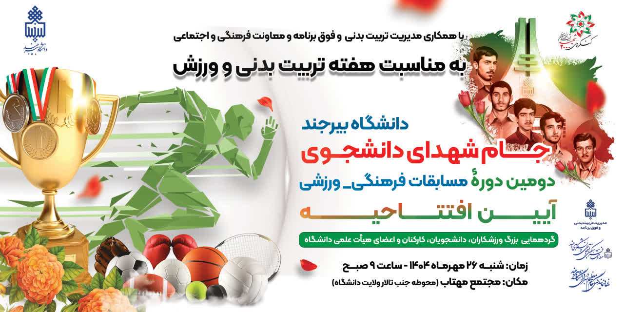 دومین دوره مسابقات فرهنگی - ورزشی و آیین افتتاحیه جام شهدای دانشجو ۲۳ مهر ۱۴۰۴ | ۱۵:۲۹ کد : ۳۲۱۳۴ اطلاعیه ها اطلاعیه های مهم ارسال به دیگران نام شما ایمیل شما ایمیل دریافتکننده ارسال انصراف تعداد بازدید:۵۱۳